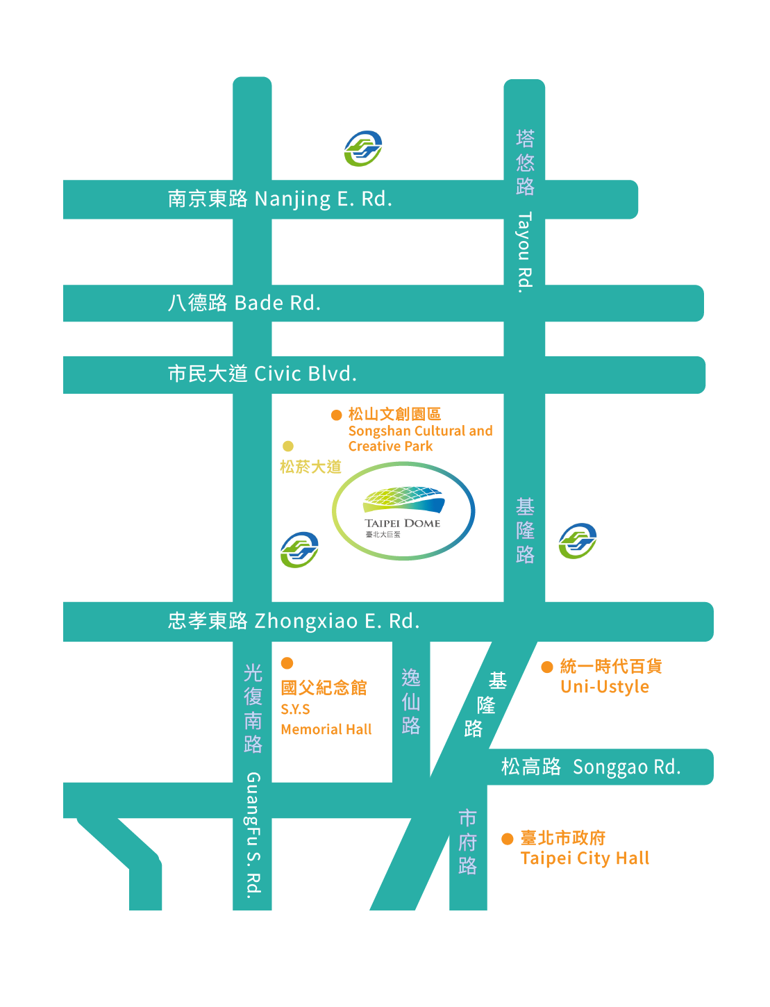 園區位置為捷運藍線國父紀念館站及市政府站之服務範圍,其中園區西南側為國父紀念館站4號及5號出入口,藉由捷運轉乘及公車接駁,可輕鬆連結捷運文湖線、淡水信義線、中和新蘆線、機場捷運線等。